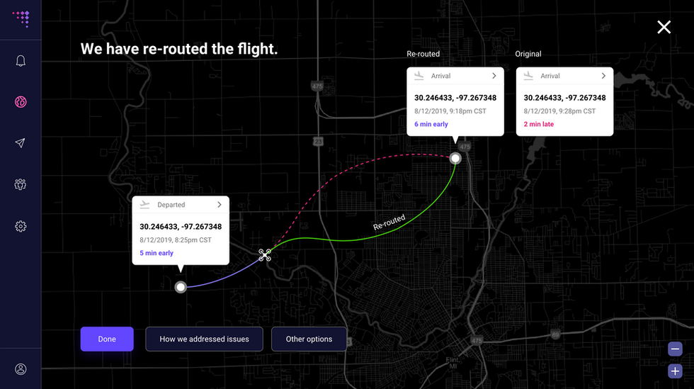 SkyGrid AI receives airspace changes in real-time, and updates the best route in real-time during a mission.