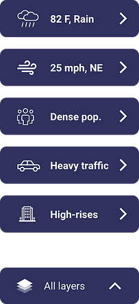When the users do want visibility, it's always available. I designed an environmental layers system that organizes airspace conditions into clear categories. Toggling a layer reveals the exact conditions of any area — including the range of values and a safety rating — giving users a complete picture on demand, without overwhelming them by default.