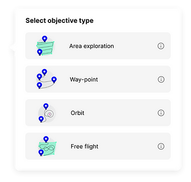 Based on the feedbacks of our potential customers, I designed the user flow that allows the user to create different kinds of missions, choose from a list of actions at each point of the mission. The user can choose from several kinds of flights, from point A to point B, or an orbit flight, or exploring an area, depending on what kind of mission is needed.