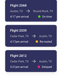 I updated the flight card to show the flight status in a line, to indicate completion %, and have colors to represent urgency. The lines made them easier to scan for the user.