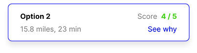 I designed the route selection view to give the user the most optimal route, without having the user to know all the details of the environmental conditions. If the user chooses to view the environmental conditions, the user should be able to.