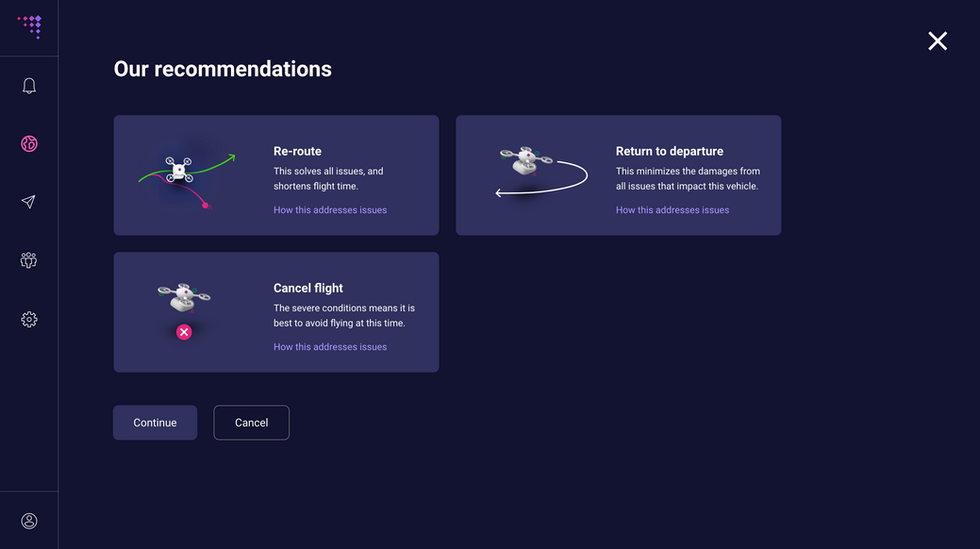 When I was designing the flights view, I kept in mind the feedbacks from our potential customers: they want a drone operation that works automatically, without having to do too much manual work. This is where SkyGrid AI comes in handy. SkyGrid AI has all the data of the environmental condition, but I should only surface data that the user needs. The AI should solve a lot of traffic issues by itself.